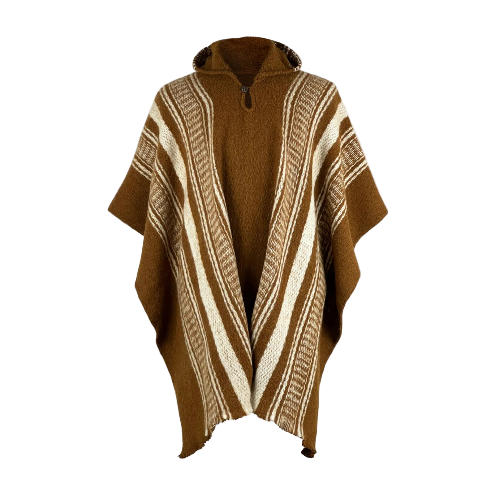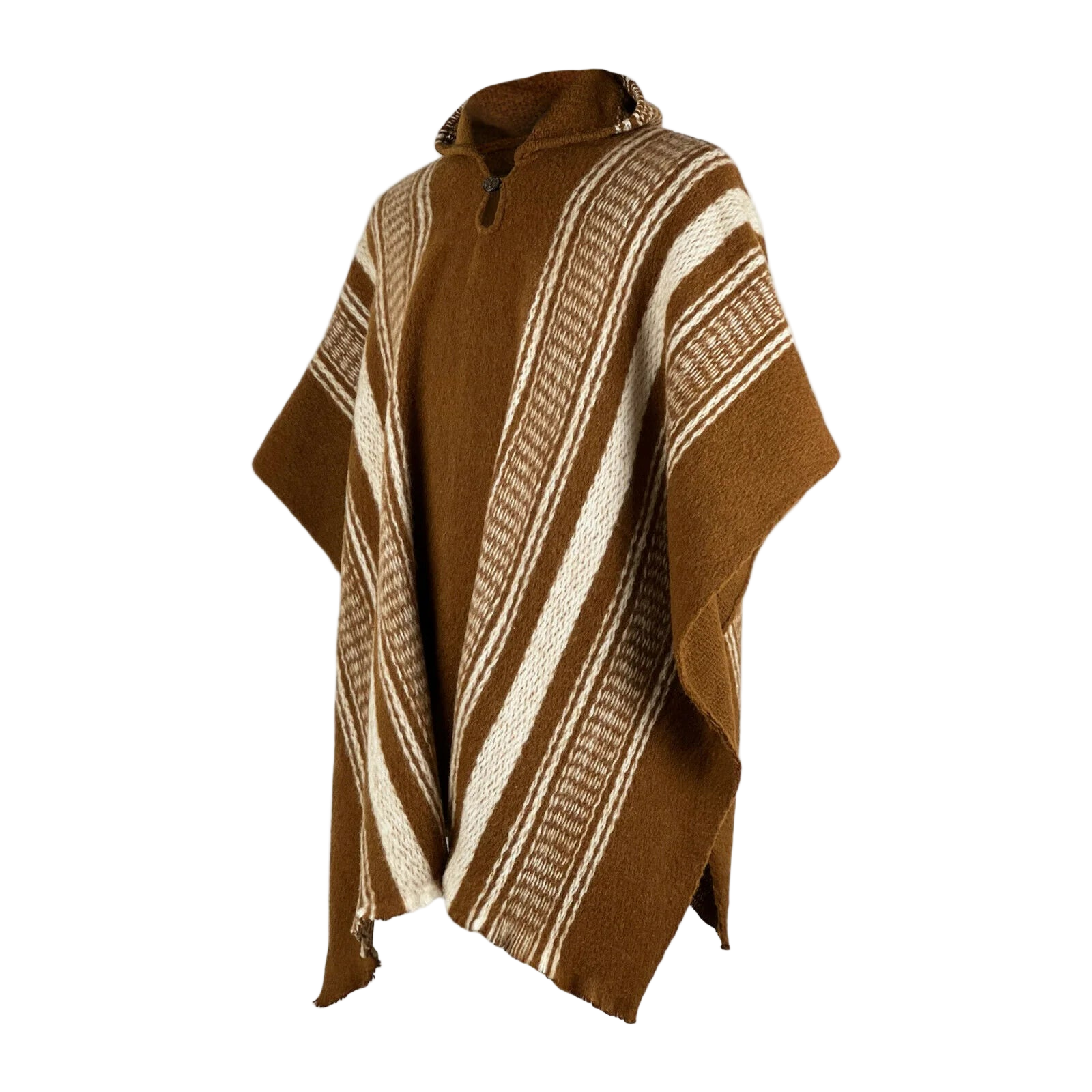 These ponchos carry the warmth of the Andes and the spirit of its people. In the renowned city of Otavalo, artisans weave each hooded poncho using time honored patterns and the natural warmth of llama wool.
